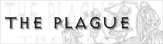 In its next recorded outbreak, the Plague earned the nickname 'The Black Death" because of the discoloration of the skin and black tumours which appeared on the second day of contracting the disease. This second large outbreak originated in Asia, reached the Crimea and from there the disease intensified, spreading through the Mediteranean and from 1346-1352, throughout Europe. The plague crept slowly westward, more quickly by sea than on land. Ships were found adrift at sea with none of the crew left alive. But when ships did manage to land with survivors, they quickly spread the disease in the new land.