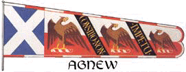 "Yes, please your Majesty, but they didna win back again."The castle and lands of the Agnews have since passed from the family, but the worldwide family of Agnew has developed strong links with their Scottish homeland, largely through the efforts of the present chief, Sir Crispin Agnew of Lochnaw, eleventh Baronet. After a career in the regular army, he was called to the Scottish Bar and is now a distinguished advocate. He is one of Scotland's leading heraldic experts and Rothesay Herald at the Court of the Lord Lyon. A thriving Clan society exists in Scotland as well as branches in the United States and Canada.